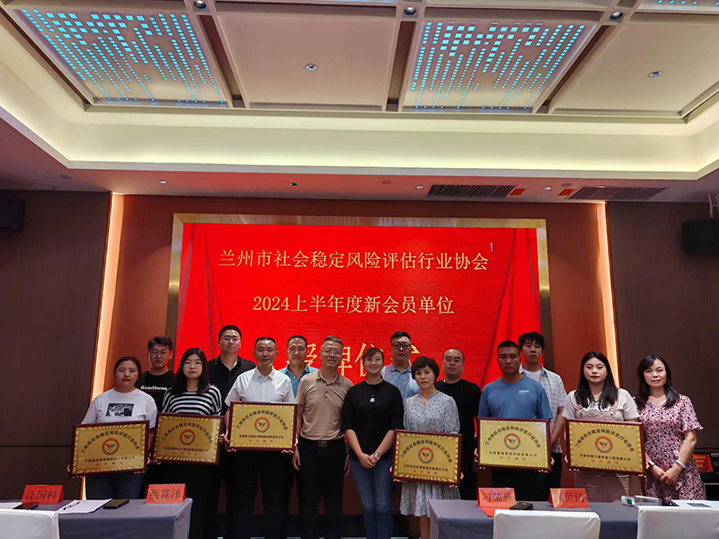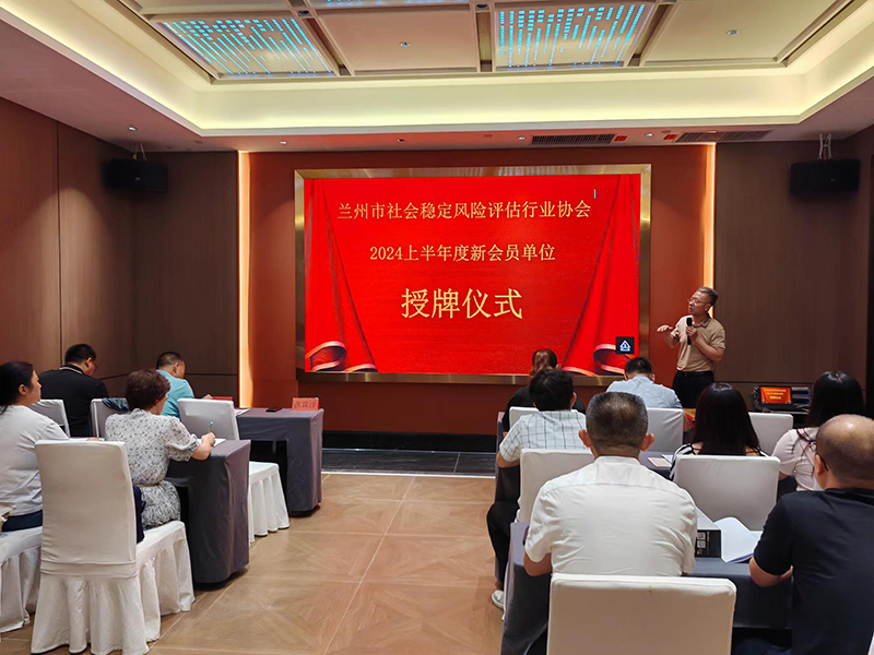 6月14日下午,兰州市社会稳定风险评估行业协会2024年上半年度新会员单位授牌仪式在伊和园礼宴中心会议室举行。